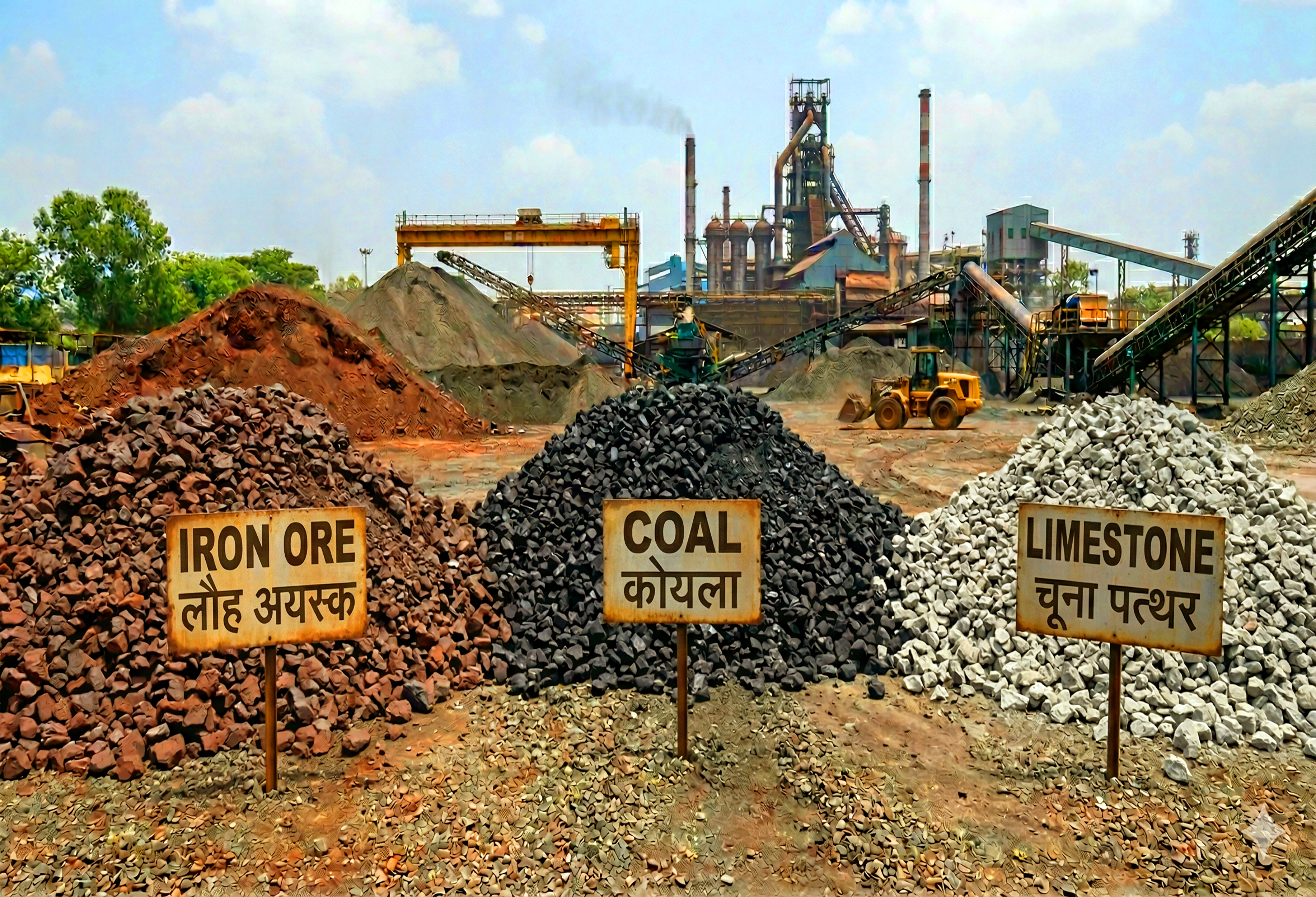 - Limestone: Crushed and used as a flux to remove impurities.
